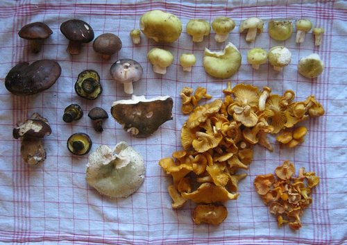 Gefunden habe ich Pfiffers, Echte und Samtige, einen Steinpilz, Maronen Schwarzblauende Röhrlinge und diverse Täublinge, darunter auch meine Lieblinge, die Pfirsichtäublinge. Ich hoffe, sie kommen jetzt zahlreich.