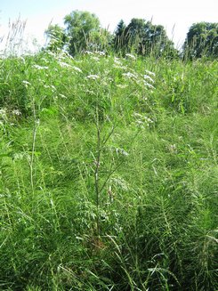 2 Fotos: Der Gefleckte Schierling, hier auf beiden Fotos zu sehen, zählt zu den giftigsten Pflanzen Mitteleuropas. Allein wenn Pflanzenteile die Haut berühren, entstehen in der Regel große schmerzhafte Brandblasen, die nicht selten operativ entfernt werden müssen. Zu den mitunter über drei Meter hohen Gewächsen sollte man einen Sicherheitsabstand von mindestens fünf Metern halten!