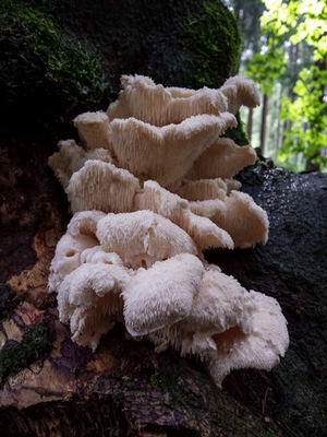 Anmerkung: Der Dornige Stachelbart - hier ein prächtiges Exemplar im besten Alter, ist ein seltener Pilz. In der Roten Liste gehört er der Kategorie G3 (Gefährdet) an (G2 = Stark gefährdet, G1 = Vom Aussterben bedroht).