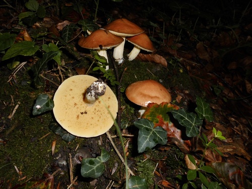 Düsterne und Gemeine Rotfüße, Maronen, ein Fichtenreizker und ein Scheidenstreifling haben den Fund ergänzt.