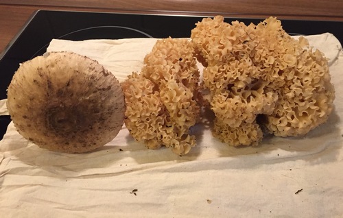 Eigentlich war ich auf der Suche nach Steinpilzen und anderen Röhrlingen, leider wieder ohne Erfolg. Dafür habe ich aber endlich Krause Glucken gefunden!