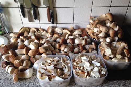 Persönlich habe ich mich heute über viele Steinpilze, darunter einen Fünfling, freuen können.