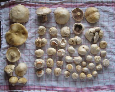 Wiesenchampignons (auf dem Foto der Block rechts), die alle völlig madenfrei waren; eine echte Freude! Zudem