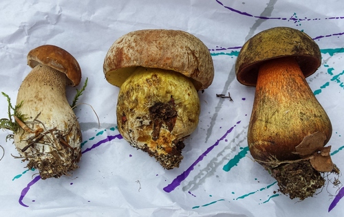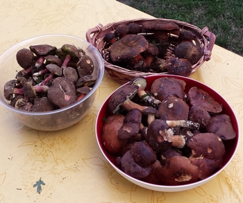 Flockies, Maronen und Rotfußröhrlinge, wie in den drei Schalen rechts zu sehen, gab es genügend zu finden.