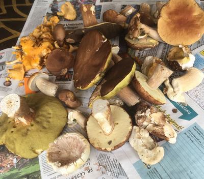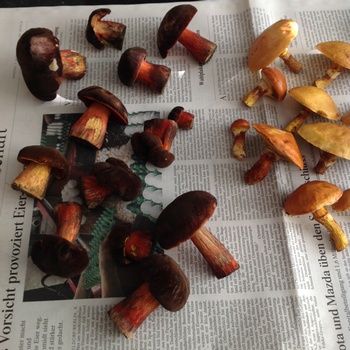 nach erneutem Regen gab es heute wieder reichlich Pilze: Steinis, Goldröhrlinge, eine Krause Glucke und eine wunderschöne junge Marone.