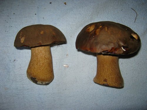 Foto: Diese zwei überaus prächtigen Schwarzhütigen Steinpilze zeigen an, dass das Pilzrevier, in dem Michael sie gefunden hat, vollkommen intakt ist. Es ist eine seltene Steinpilzart, die bevorzugt unter Eichen und Esskastanien wächst. (4 Fotos © Michael)