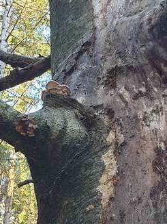 Bei dieser Gelegenheit suchten wir noch eine alte Buche auf, die im Sommer die schönsten Lungenseitlinge hervorgebracht hatte; leider in unerreichbarer Höhe. Schon von weitem konnten wir die Austernseitlinge sehen.