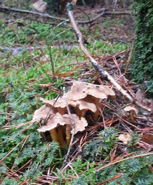 2 Fotos rechts: Über eine schöne Ernte von Trompetenpfifferlingen im Landkreis Neustadt/Aisch hat sich Sandro am 1. Weihnachtstag gefreut. Vor allem deshalb, weil er sie noch nie so spät gefunden hat.