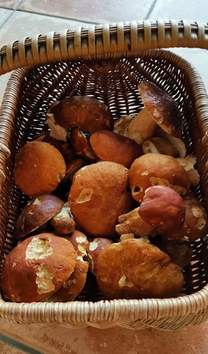 Christian war heute kurz vor der Arbeit noch im Wald bei Ingolstadt. Für zwei guade Mahlzeiten reicht es allemal. Darunter sind Hexenröhrlinge, Steinpilze und zwei kleine Rotkappen.