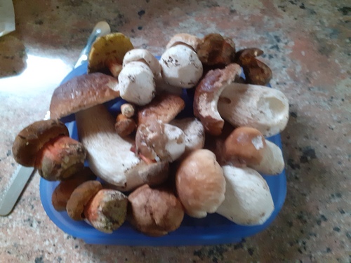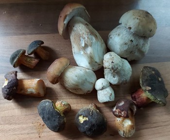 wir haben unsere ersten Steinpilze gefunden. Dazu gab es noch ein paar Flockenstielige Hexen und einige Rotfußröhrlinge.