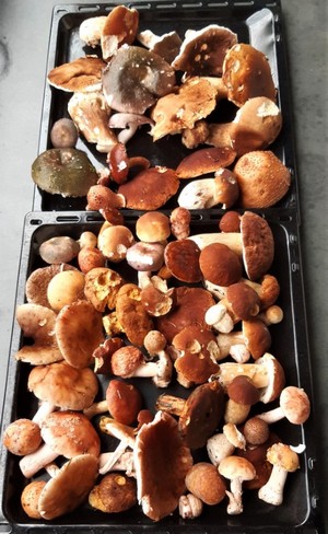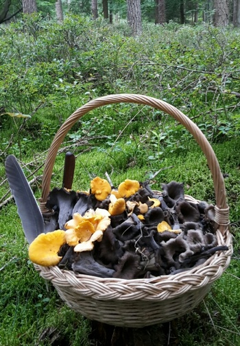 Zuhause angekommen, wanderten die Trompeten und Kraterellen in den Dörrautomaten. Die Pfifferlinge wurden gesäubert und warten darauf, dass sie heute eingekocht werden.