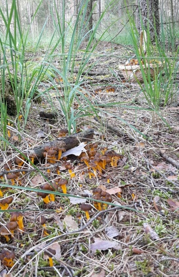 Was mich allerdings sehr gefreut hat, waren Funde von ganz jungen Gelben Kraterellen. An einer Stelle mit Pfifferlingen habe ich schon drei kleinere Büschel gesehen. Ich war mir nicht 100% sicher, da ich an dieser Stelle erst seit diesem Jahr suche, somit noch keine Erfahrung in diesem Bereich des Waldes habe.