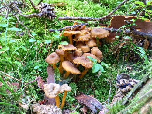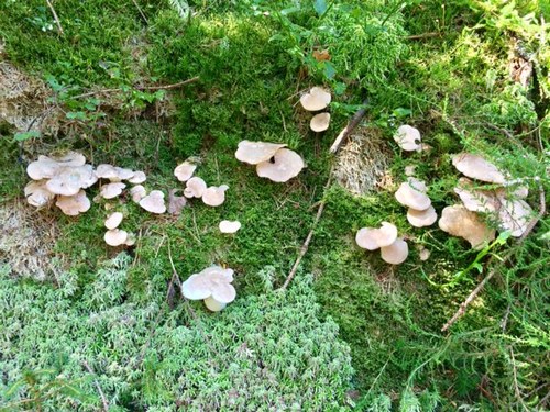 Gesammelt habe ich in diesen Wäldern viele Trompetenpfifferlinge (4. Foto), einige Echte und Samtige Pfifferlinge, Maronenröhrlinge, Goldröhrlinge und einen Elfenbeinröhrling.
