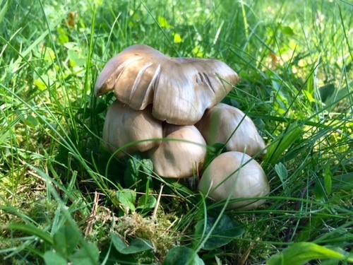 Foto: Sie haben sich eindeutig verirrt: die sehr wohlschmeckenden Schildrötlinge sind Pilze des Aprils, die an Rosengewächse aller Art gebunden sind. Ihr fruchtig-mehliger Geruch ist unverkennbar. Ausgezeichnete Speisepilze!
