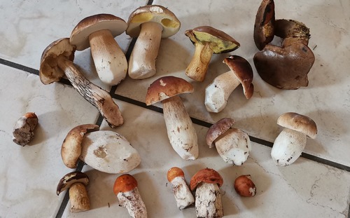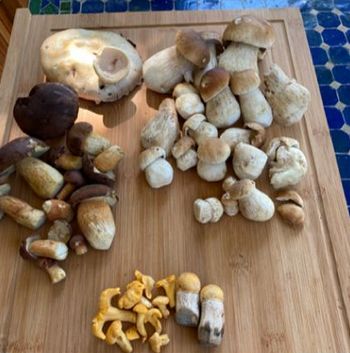 Foto: Wenn das Armin wüsste: Carmen und Christian haben in "seinen" Trifterner Wäldern bei einem spontanen Schwammerlgang gute Ausbeute gemacht und so für ein nicht geplantes köstliches Schwammerlgericht am Abend gesorgt. Der auf dem 2. Foto gezeigte Steinpilz liegt beim Gesamtfund in der Mitte.