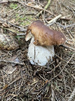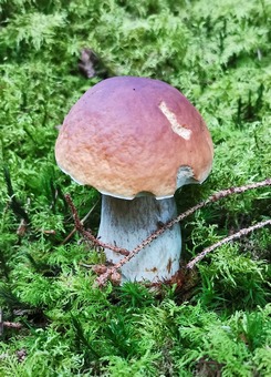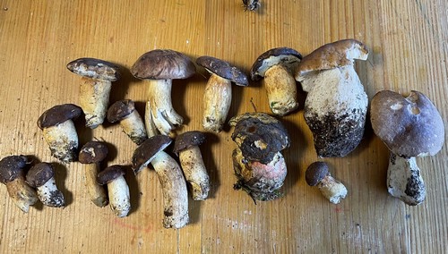 Gefunden in der Nähe von Triftern habe ich Maronenröhrlinge, Birkenpilze, einen Flockenstieligen Hexenröhrling und einen Steinpilz (Foto rechts).