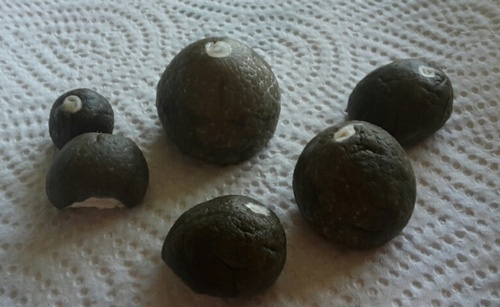 Foto: Keine Feigen, sondern das Innere des Hexeneis, nachdem die glibberige Außenschicht entfernt wurde, was vor der Zubereitung vonnöten ist.