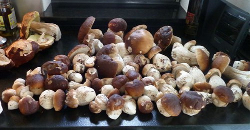 Foto: War das ein Pilzgang! Wer diese Steinpilze sieht, ahnt, was Corinna da an Gewicht aus dem Wald zu schleppen hatte.