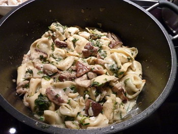 Hier mal Steinpilze mit Tortellini (Ricotta-Spinat) dazu noch frischer