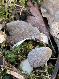 4 Fotos: Sie sind noch klitzeklein, doch Katja hat am 27. Februar die ersten Spitzmorcheln 2022 entdeckt. Vergangenes Jahr hatte sie die ersten am 28. Februar gefunden, 2020 am 2. März. Damals waren es ebenfalls vier Stück. (4 Fotos © Katja)