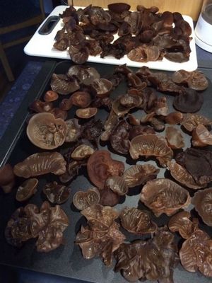 Gleich mit dem ersten Versuch waren wir erfolgreich und fanden 1450 Gramm wunderschöne Austernseitlinge. In einem anderen Wald entdeckten wir eine Stelle mit vielen alten Holunderbäumen. Wir wurden mit 850 Gramm Judasohren belohnt, die ausschließlich an Holunder wuchsen.