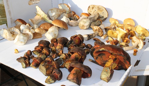 Stehen blieben etliche Perlpilze und ein fester, dennoch leider schon verwurmter Fichtensteinpilz."