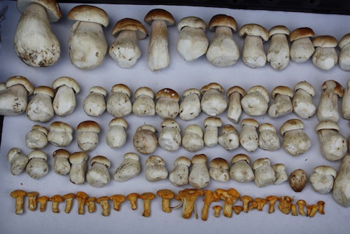 Foto: Von Null auf Einhundert - so kann man wohl diesen Fund von Pilzfreund Helmut nennen, nachdem es in Bayern seit Wochen kaum einmal Steinpilzfunde gab. Mit militärischer Akuratesse präsentieren sich Steinpilze und Pfifferlinge. (Foto © Helmut Wohlrab)