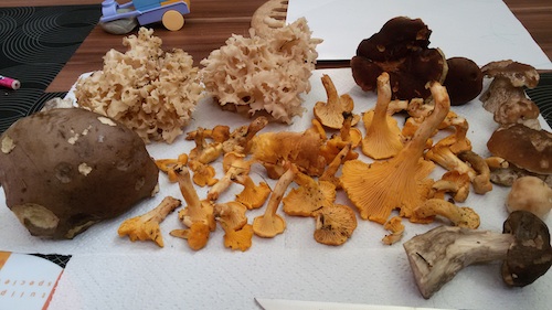 Foto: Geschmackvolle Pilzvielfalt, zusammengetragen in kurzer Zeit vor der Arbeit. Armin kann sich über anhaltend gute Sammelerfolge in dieser Pilzsaison freuen. (Foto © Armin)
