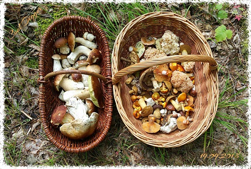 "Wieder mal waren wir am Samstag sehr früh in den Oberfränkischen Wäldern unterwegs. Nach gut zwei Stunden haben wir die Pilztour zufrieden und glücklich beendet, was sicher auch unseren Körben abzulesen ist.