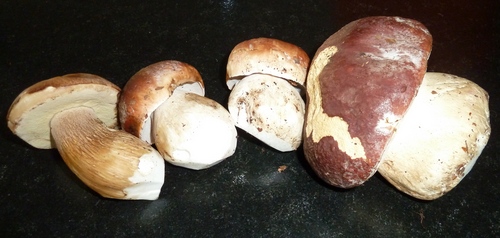 Wie diese Art Steinpilze genau heißen, weiß ich nicht; eventuell Rothütiger Steinpilz. Diese Sorte habe ich zuletzt vor vier Jahren an genau der Stelle gefunden. Sie haben auch einen anderen Geruch als die Sommer- oder Herbststeinpilze, sind sehr fest und schwer.