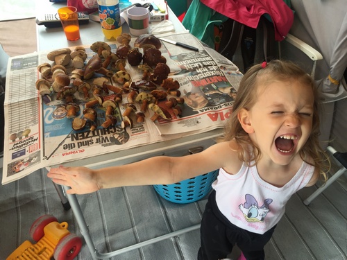 Foto: Walter begeistert sich an seinen Steinpilzen, daran kann auch die Tatsache nichts ändern, dass die Schnecken schon ein wenig vorgekostet haben.