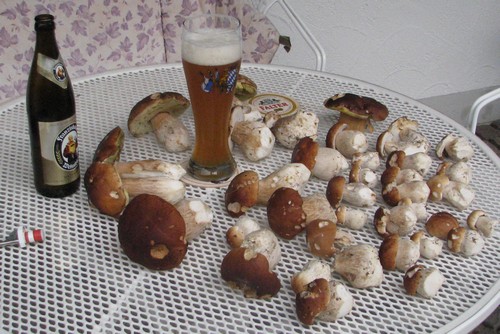 Foto: Wenn einem der Wald soviel Schönes beschert, dann ist das schon mal ein Franziskaner Weißbier wert. Ein Prosit auf den herrlichen Fund! (2 Fotos © Walter)