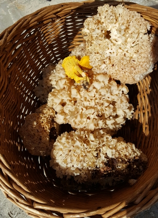 heute habe ich wieder einige schöne Krause Glucken und Pfifferlinge gefunden.