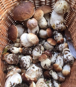Foto: Da liegen die schönen Steinpilze, Butterpilze und Raufüße im Korb - und Ninas Tag war gerettet. (Foto © Armin)