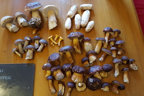 Wir haben einige Maronen, Rotfußröhrlinge und Steinpilze gefunden, von denen bis auf ein oder zwei alle madenfrei waren.