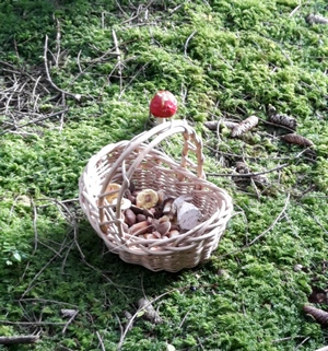 Foto: Der Pilzgang während des Heimaturlaubs hat sich für Max gelohnt. Zusammen mit seinem Vater hat er diese Ausbeute zusammengetragen. Auf dem zweiten Foto setzt ein roter Leuchtpunkt den halb gefüllten Schwammerlkorb schön in Szene. (2 Fotos © Max)