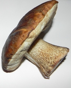 2 Fotos: Zwei erstklassige Birkenpilze, beinahe mit dem Habitus von Steinpilzen, hat Herbert direkt am Fahrradweg nach Wertingen gefunden. (2 Fotos © Herbert)