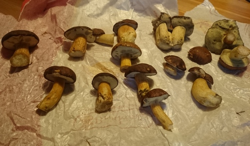 Ich durfte mich heute wenigstens über zwei mittlere Steinpilze und einen stattlichen Hexenröhrling freuen.