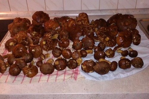 »Wir kriegen einfach nicht genug und waren am Sonntag erneut im Wald um Kulmbach. Was Ihr auf dem Foto seht, ist lediglich der Maronenfund einer Urlauberfamilie. Wir hatten das Doppelte.