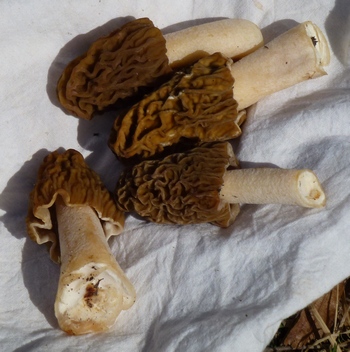 Waren es am letzten Wochenende die ersten Morchelbecherlinge (Foto rechts) und Anemonenbecherlinge, so konnte ich heute südlich von Augsburg schon jeweils ein gutes Dutzend Spitzmorcheln und Böhmische Verpeln ernten.
