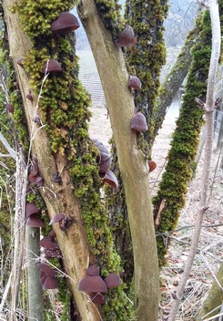 2 Fotos: Nach langem Winterschlaf räkeln sich die Judasohren dank des milden und feuchten Wetters im Geäst des Holunders. (2 Fotos © Stefan)
