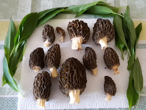 Foto: Zum Kranze gewunden sind hier nicht, wie bei Friedrich Schiller, goldene Ähren, sondern frische Bärlauchblätter, die elf Spitzmorcheln kunstreich umfangen.