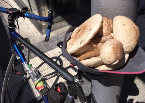 Foto: Ein Korb voller Parasole, entdeckt bei einer nächtlichen Autofahrt. Das war gewiss ein Waldschnitzelschmaus für Christian und andere!