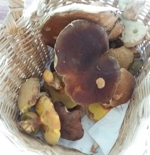 Neben den Steinpilzen kann man aktuell auch genügend leckere Maronen, Ziegenlippen, Safranschirmlinge und immer noch reichlich Flockenstielige Hexenröhrlinge und Täublinge finden.