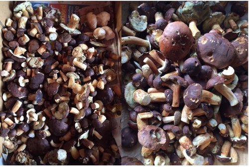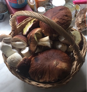 Steinpilze en masse, Goldröhrlinge, Maronen, Reifpilze und Edelreizker (Foto rechts). Ein Traum!