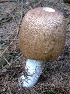 Foto: Es dürfte sich hier um einen Feinschuppigen Egerling oder einen groß geratenen Wiesenchampignon handeln, die beide eng miteinander verwandt sind. (Foto © Herbert)