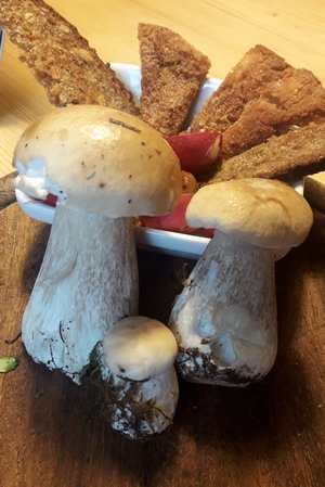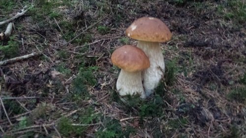 Foto: Siglinde und Walter waren ganz hingerissen von ihrem besten Steinpilzfund, den sie in 50 Jahren je gehabt haben. Gestern, in einem kleinen Wald im Ostallgäu, war es so weit. Die hier gezeigten zwei Exemplare waren besonders schön.