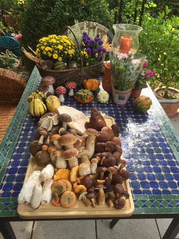am Freitag war ich wieder auf Pilzpirsch südlich München. Und konnte erneut einen sehr schönen Fund machen. Nicht ohne Stolz und Freude präsentiere ich ihn mit herbstlicher Dekoration (Foto rechts).