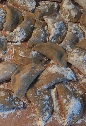 Für mich blieb noch genug übrig, um am Abend Schlutzkrapfen, gefüllt mit Steinpilzen, Spinat und Frischkäse, zuzubereiten, eine Tiroler Spezialität (1. Foto rechts). Sogar zum Trocknen einiger Exemplare reichte es noch.