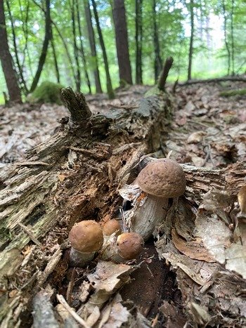 Bei uns in den Wäldern trifft man gerade auf viele große alte Pilze, die bereits vergehen.